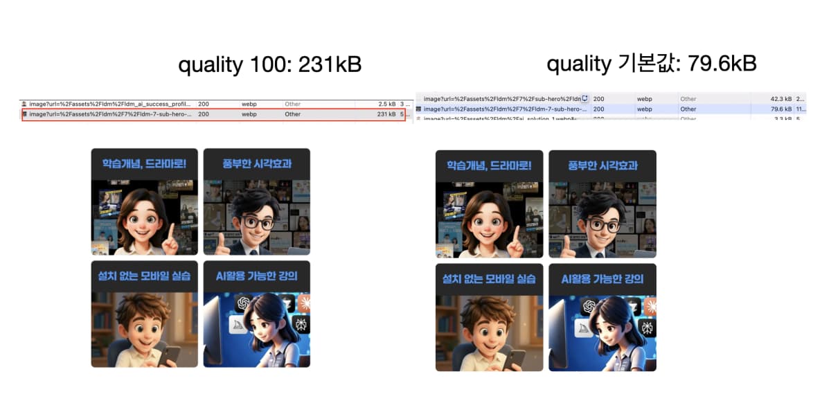 next image에 quality 속성이 있는데 거의 모든 이미지의 quality가 100이었다. (기본값 75)