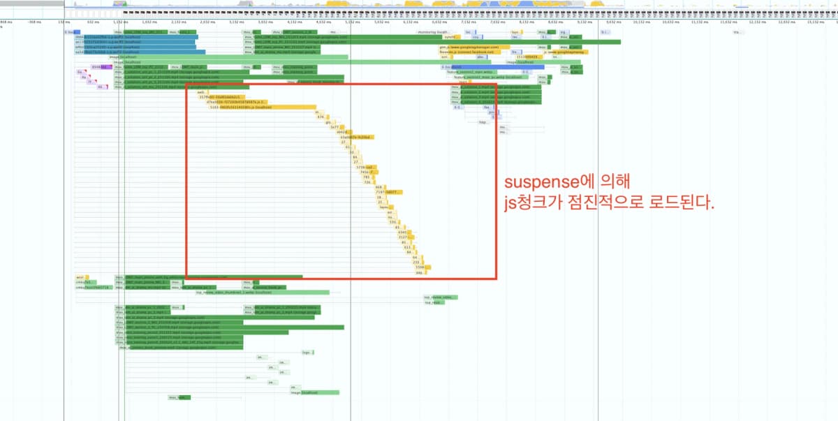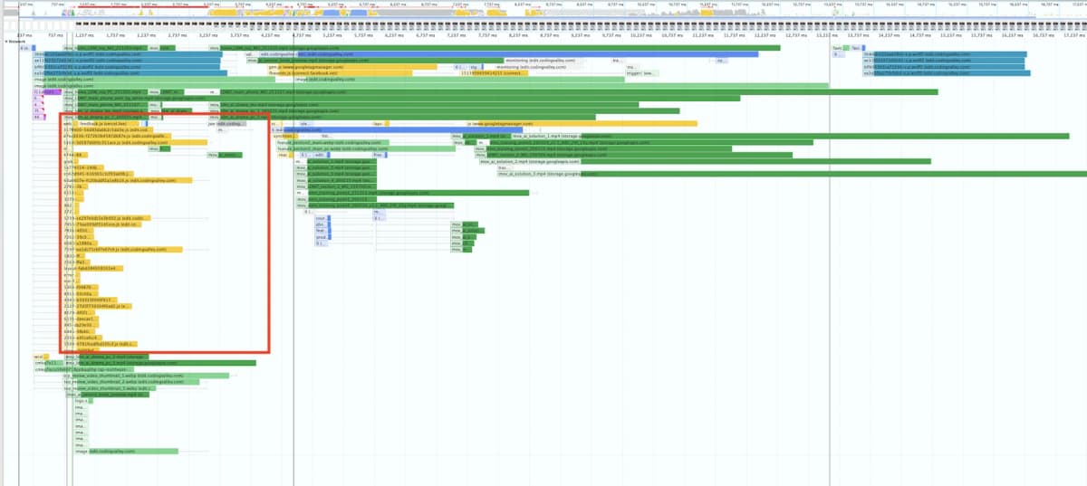 LCP 이미지를 반으로 쪼갰지만 다운받아야 하는 에셋,영상들이 너무 많아 네트워크 경쟁이 심한 상태였다.